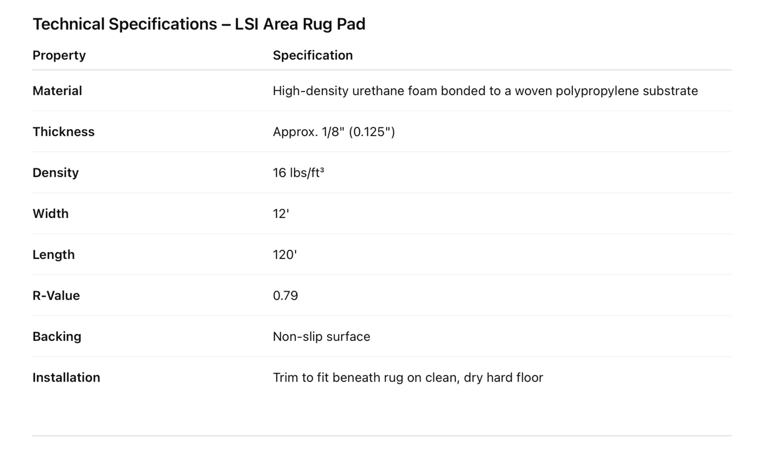 LSI Area Rug Pad